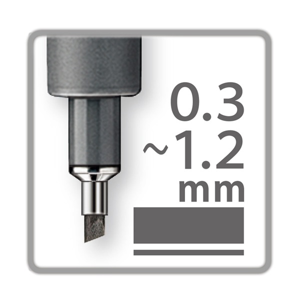 - Long metal tip, ideal for use with rulers and templates e.g. Mars 572 FL PP barrel guarantees long service life